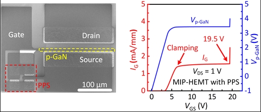 器件可靠性是制約GaN基功率器件廣泛應(yīng)用的難點問題,針對動態(tài)閾值電壓漂移這一難題,該團隊提出了金屬/絕緣層/p-GaN新型器件結(jié)構(gòu),一方面實現(xiàn)了近20V的柵極電壓冗余,另一方面消除了動態(tài)閾值電壓漂移。該工作大幅提升了器件魯棒性,攻克了閾值電壓不穩(wěn)帶來的系統(tǒng)誤開啟難題,使GaN基功率器件實現(xiàn)了與Si基MOSFET器件類似的工作模式(IEDM, Sec.9-4, 2023)。