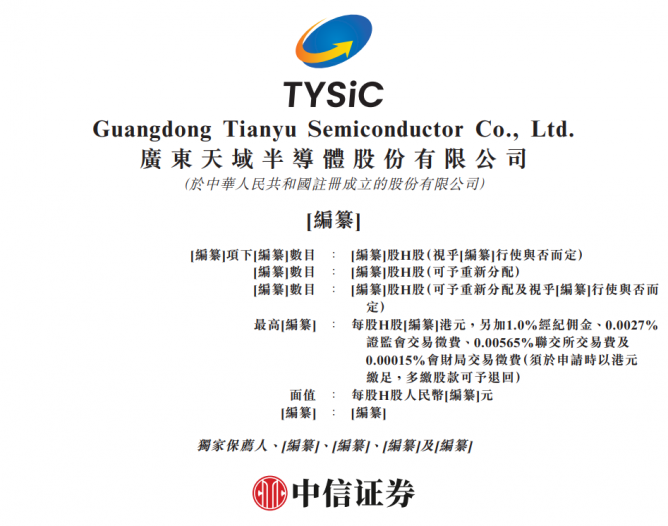 半導(dǎo)體產(chǎn)業(yè)網(wǎng)獲悉:據(jù)港交所12月23日披露,廣東天域半導(dǎo)體股份有限公司(以下簡稱為“天域半導(dǎo)體”)向港交所主板提交上市申請書,中信證券為獨(dú)家保薦人。