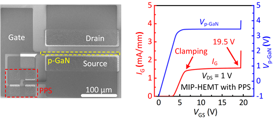 器件可靠性是制約GaN基功率器件廣泛應(yīng)用的難點問題,針對動態(tài)閾值電壓漂移這一難題,該團隊提出了金屬/絕緣層/p-GaN新型器件結(jié)構(gòu),一方面實現(xiàn)了近20V的柵極電壓冗余,另一方面消除了動態(tài)閾值電壓漂移。該工作大幅提升了器件魯棒性,攻克了閾值電壓不穩(wěn)帶來的系統(tǒng)誤開啟難題,使GaN基功率器件實現(xiàn)了與Si基MOSFET器件類似的工作模式(IEDM, Sec.9-4, 2023)。