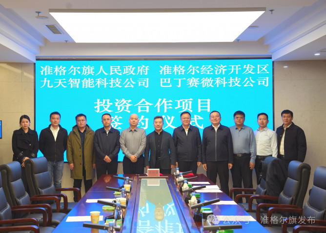 ▲ 12月26日晚,準格爾旗人民政府、準格爾經濟開發(fā)區(qū)與九天智能科技公司、巴丁賽微科技公司舉行新能源電力電子半導體產業(yè)園項目簽約儀式。