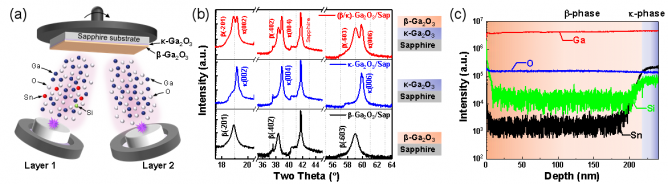 超寬禁帶半導(dǎo)體氧化鎵(Ga2O3)因其超寬禁帶寬度、較高的電子遷移率以及高擊穿電場(chǎng),正逐漸成為先進(jìn)電子器件(如日盲探測(cè)和高功率電子器件)的理想候選材料。氧化鎵表現(xiàn)出多種晶相,包括α、β、γ、δ、ε和κ相。其中,具有單斜結(jié)構(gòu)的β相氧化鎵因其熱力學(xué)穩(wěn)定性和襯底的可用性而最受關(guān)注?;谕庋?beta;相氧化鎵薄膜的深紫外探測(cè)器、肖特基二極管及場(chǎng)效應(yīng)晶體管的應(yīng)用已得到廣泛驗(yàn)證。近年來(lái),研究通過(guò)金屬氧化物催化外延生長(zhǎng),利用Sn作為催化劑成功誘導(dǎo)κ相氧化鎵的形成。這種方法生產(chǎn)的κ相氧化鎵薄膜表現(xiàn)出高質(zhì)量及卓越的器件性能。