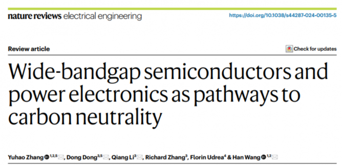 1月22日,香港大學(xué)先進半導(dǎo)體和集成電路中心張宇昊教授和汪涵教授、美國弗吉尼亞理工大學(xué)電力電子研究中心(CPES)東棟教授、酈強教授、Richard Zhang教授、以及英國劍橋大學(xué)Florin Udrea教授(其中張宇昊教授與東棟教授為共同一作)共同在Nature Reviews Electrical Engineering發(fā)表題為“Wide-bandgap semiconductors and power electronics as pathways to carbon neutrality(第三代半導(dǎo)體和電力電子 – 實現(xiàn)碳中和的必經(jīng)之路)”的綜述文章。不同于傳統(tǒng)聚焦于電力應(yīng)用減少碳排放的視角,這篇文章從底層半導(dǎo)體技術(shù)入手,沿著第三代半導(dǎo)體材料、功率器件、變換電路以及電力電子應(yīng)用的完整產(chǎn)業(yè)鏈,深入探討它們在助力碳中和轉(zhuǎn)型中的巨大潛力。此外,文章首次定量評估了在光伏、電動汽車、數(shù)據(jù)中心和熱泵這四大關(guān)鍵應(yīng)用領(lǐng)域,使用第三代半導(dǎo)體器件替代傳統(tǒng)硅基器件所能實現(xiàn)的年度碳排放減排效果。