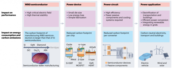 圖1. 第三代半導(dǎo)體、功率器件、轉(zhuǎn)換電路和電力電子應(yīng)用對實現(xiàn)碳中和的重要作用。