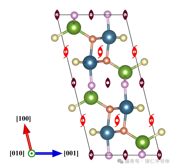 對稱性是宏觀世界的核心概念之一,從天體運動的角動量守恒,到自然生物的形態(tài)與功能,都深受對稱性的影響。即便在更為微觀的原子尺度,對稱性亦不可或缺。對于晶體材料的透徹理解,同樣離不開對其對稱性的深刻認識,β-Ga2O3也并不例外。β-Ga2O3是一種具有廣闊應(yīng)用前景的寬禁帶半導(dǎo)體材料。眾所周知,β-Ga2O3的空間群為C2/m,相較于具有P63mc空間群的4H-SiC與GaN,其對稱操作更少,對稱性也更低。在圖1所示β-Ga2O3單胞中,存在具有鏡面對稱性的(010)面,以及具有二次旋轉(zhuǎn)對稱性與螺旋旋轉(zhuǎn)對稱性的[010]晶向。