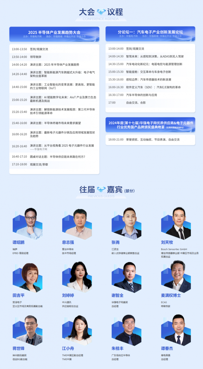 2025半導(dǎo)體產(chǎn)業(yè)發(fā)展趨勢大會議程及往屆分享嘉賓(部分)