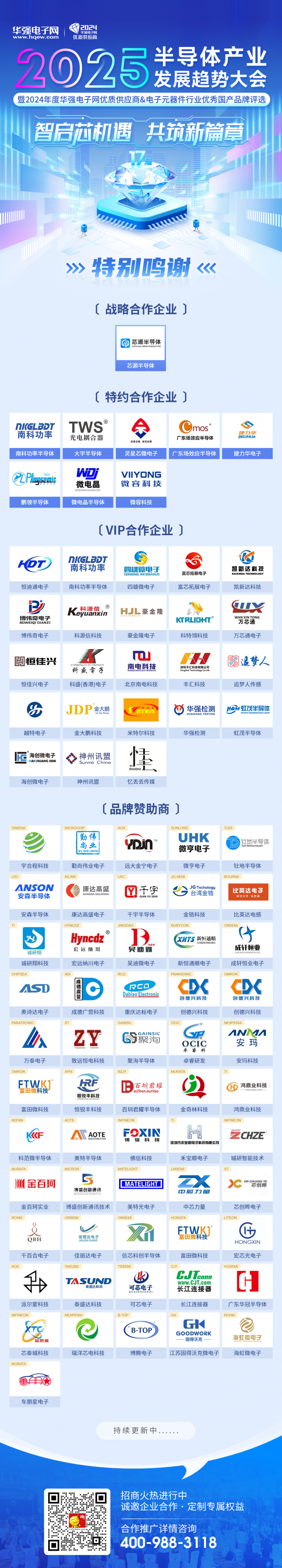 特別鳴謝各優(yōu)質(zhì)企業(yè)對華強(qiáng)電子網(wǎng)年度評選及行業(yè)大會的鼎力支持!