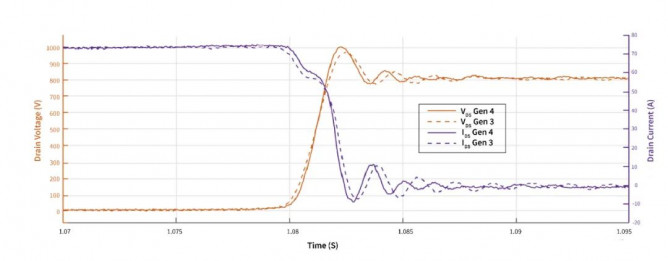 圖 3:第 3 代和第 4 代 MOSFET 的關(guān)斷波形對(duì)比