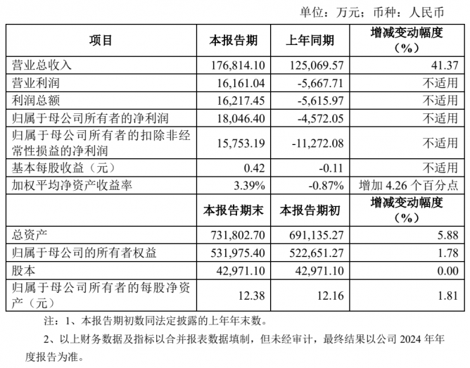 報(bào)告期內(nèi),公司歸屬于母公司所有者的凈利潤(rùn) 18,046.40 萬元,同比增加22,618.45 萬元,扭虧為盈;歸屬于母公司所有者的扣除非經(jīng)常性損益的凈利潤(rùn)15,753.19 萬元,同比增加 27,025.27 萬元,扭虧為盈。