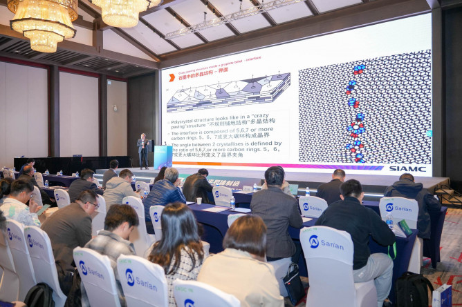 期間,“分論壇一:8英寸碳化硅晶圓智能制造”上,賽邁科先進材料股份有限公司CTO、副總經(jīng)理吳厚政,做了“精細石墨元件:化合物半導體高質(zhì)量產(chǎn)業(yè)化的關(guān)鍵支撐”的主題報告,結(jié)合精細石墨特點,分享了相關(guān)應(yīng)用設(shè)計理念與系列解決方案,旨在為化合物半導體行業(yè)碳材料產(chǎn)品的設(shè)計和使用提供更好的指導和優(yōu)化。涉及石墨在SiC半導體的應(yīng)用、精細石墨設(shè)計基礎(chǔ)、石墨及碳材料產(chǎn)品設(shè)計、SiC行業(yè)用高純石墨粉、SiC半導體行業(yè)用高純SiC粉等。