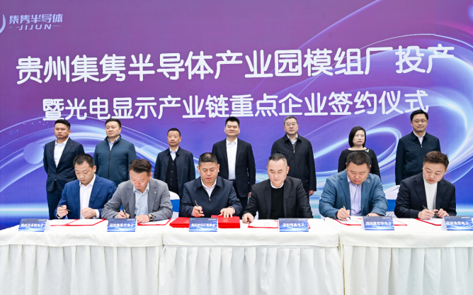 3月22日,貴州集雋半導(dǎo)體產(chǎn)業(yè)園模組廠投產(chǎn)暨光電顯示產(chǎn)業(yè)鏈重點(diǎn)企業(yè)簽約儀式在貴陽綜保區(qū)舉行。