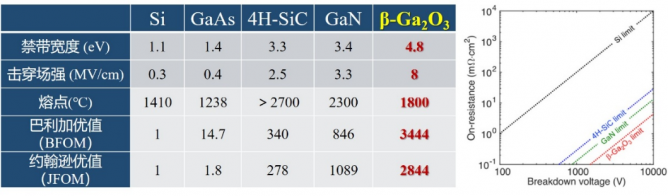 氧化鎵的巴利加優(yōu)值大約是SiC的10倍、GaN的4倍,使用氧化鎵研制的器件將具有更小的導通電阻和更高的功率轉換效率。