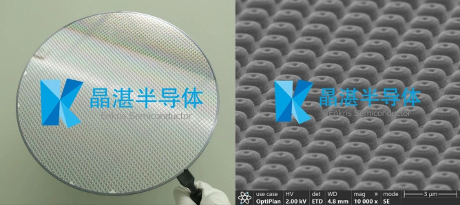 圖1 晶湛半導體展示經ZDP™平臺驗證的200mm Micro-LED晶圓及陣列SEM照片