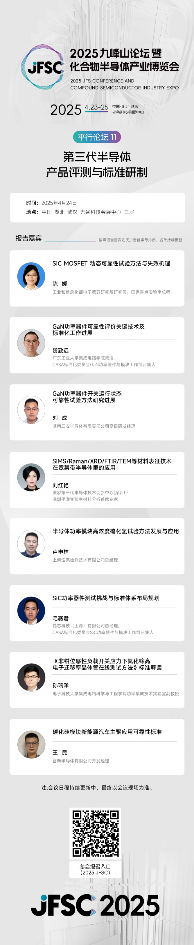 2025年4月23-25日,第三屆九峰山論壇(JFSC)暨化合物半導(dǎo)體產(chǎn)業(yè)博覽會(CSE)將在武漢光谷科技會展中心盛大啟幕。作為其中的重頭戲,九峰山論壇延續(xù)往年的多元化架構(gòu),以1場主論壇、11場平行論壇的強(qiáng)大陣容,攜手全球相關(guān)領(lǐng)域權(quán)威科研機(jī)構(gòu)、領(lǐng)軍企業(yè)及行業(yè)專家代表,共同探索化合物半導(dǎo)體產(chǎn)業(yè)未來發(fā)展方向。