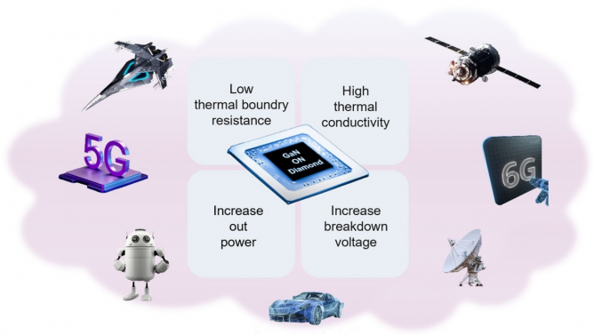 圖4 終極半導(dǎo)體金剛石可以幫助生產(chǎn)面向未來市場的GaN器件,促進(jìn)GaN器件的廣泛應(yīng)用