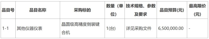 項目名稱:晶圓級高精度倒裝鍵合機(jī)采購