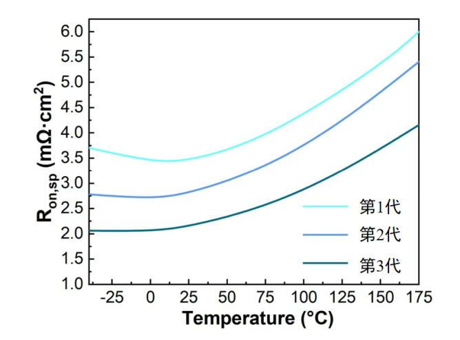 圖1 清純半導(dǎo)體1、2、3代產(chǎn)品比電阻Rsp變化