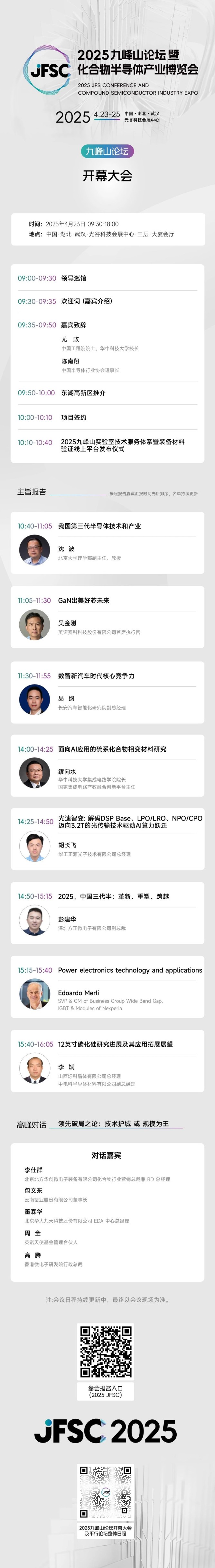 2025九峰山論壇暨化合物半導體產(chǎn)業(yè)博覽會即將于明日重磅開幕!本屆展會在前兩屆成功舉辦的基礎上繼續(xù)提檔升級,作為重頭戲,聚焦化合物半導體產(chǎn)業(yè)技術發(fā)展的高峰論壇將延續(xù)往年的多元化架構(gòu),以1場主論壇、11場平行論壇,逾15場同期活動的強大陣容,共同探索化合物半導體產(chǎn)業(yè)未來發(fā)展方向。