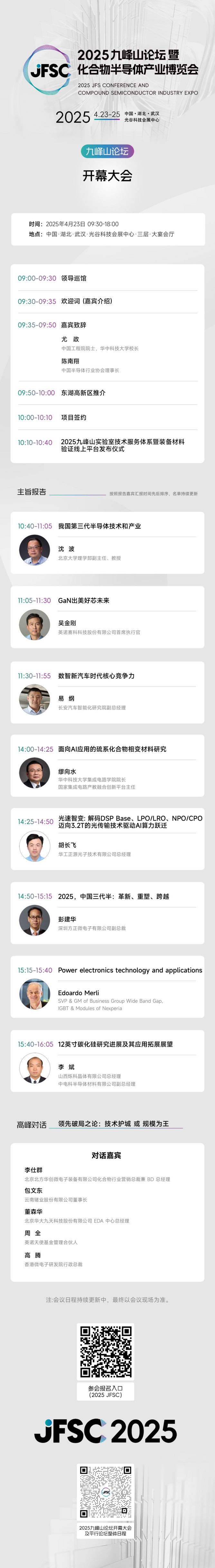 2025九峰山論壇暨化合物半導(dǎo)體產(chǎn)業(yè)博覽會(huì)即將于明日重磅開幕!30+重磅論壇活動(dòng),200+報(bào)告嘉賓,近300家展商齊聚,共襄盛會(huì)!