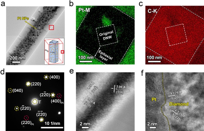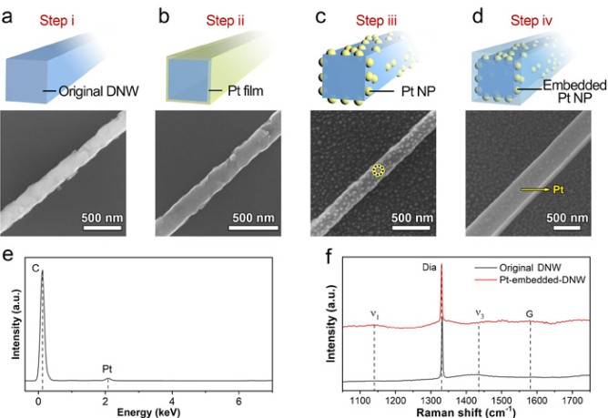 圖1. 內(nèi)嵌鉑納米顆粒單晶金剛石納米線的制備