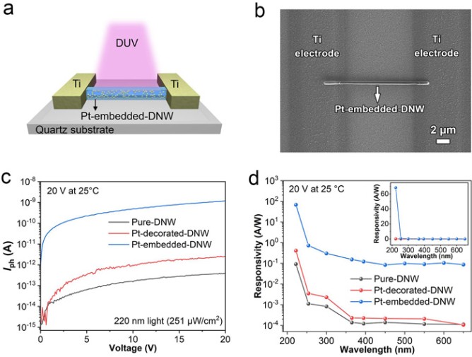 圖3. 單晶金剛石納米線光電探測器的室溫日盲紫外光電探測性能