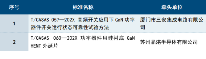 2025年4月29日,由廈門市三安集成電路有限公司牽頭起草的T/CASAS 057—202X《高頻開關(guān)應(yīng)用下GaN功率器件開關(guān)運(yùn)行狀態(tài)可靠性試驗(yàn)方法》以及由蘇州晶湛半導(dǎo)體有限公司牽頭起草的T/CASAS 060—202X《功率器件用硅襯底GaN HEMT外延片》已完成征求意見稿的編制,正式面向第三代半導(dǎo)體產(chǎn)業(yè)技術(shù)創(chuàng)新戰(zhàn)略聯(lián)盟成員單位征求意見,為期一個(gè)月。根據(jù)聯(lián)盟標(biāo)準(zhǔn)化工作管理辦法,2025年4月29日起開始征求意見,截止日期2025年5月29日。