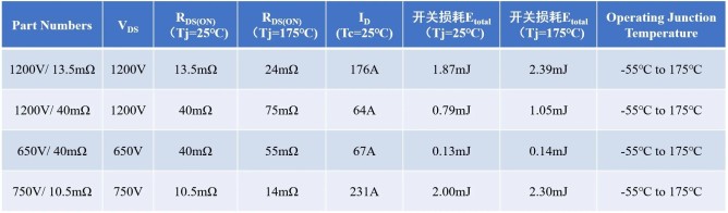表1 新一代碳化硅MOSFET參數(shù)列表
