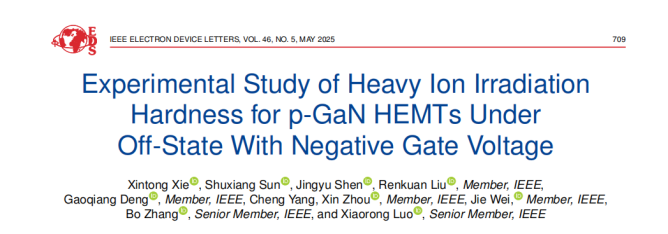 半導體產(chǎn)業(yè)網(wǎng)獲悉:近日,電子科技大學功率集成技術實驗室羅小蓉教授團隊聯(lián)合華潤微電子(重慶)有限公司,在學術期刊IEEE Electron Device Letters發(fā)表了一篇名為Experimental Study of Heavy Ion Irradiation Hardness for p-GaN HEMTs Under Off-state with Negative Gate Voltage的學術論文。