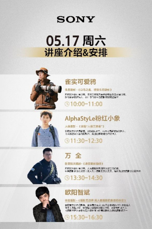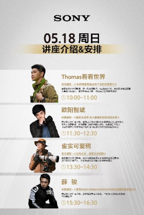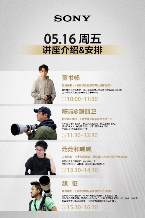 5月16日到19日上午,索尼還將在展臺(tái)舉辦14場(chǎng)攝影師講座和互動(dòng)分享,邀請(qǐng)多位索尼官方合作攝影師親臨現(xiàn)場(chǎng),圍繞人像、生態(tài)、體育、航空等不同題材,深入講解實(shí)戰(zhàn)拍攝經(jīng)驗(yàn),為現(xiàn)場(chǎng)影友在未來創(chuàng)作中提供更多靈感,啟發(fā)更多影像表達(dá)的可能。