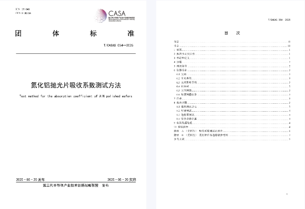 T/CASAS 054—2025《氮化鋁拋光片吸收系數(shù)測(cè)試方法》描述了氮化鋁(AlN)拋光片光吸收系數(shù)的測(cè)試方法,包括原理、儀器設(shè)備、測(cè)試條件、樣品、測(cè)試步驟、結(jié)果計(jì)算和測(cè)試報(bào)告。適用于氮化鋁拋光片的光學(xué)質(zhì)量控制和評(píng)估。氮化鋁外延片可參照使用。