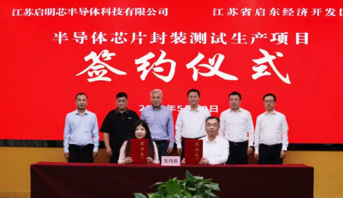 5月20日,啟明芯半導體科技項目簽約儀式在啟東市行政中心舉行。臺灣彗興科技有限公司董事長徐仲生,東莞市嘉源半導體設備科技有限公司總經理蔣波榮,浙江晶光科技股份有限公司董事長夏勇,市領導楊中堅、郭建、宋海華參加簽約儀式。
