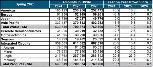 昨日,世界半導體貿(mào)易統(tǒng)計協(xié)會(WSTS)發(fā)布報告,預測2025年全球半導體市場規(guī)模。