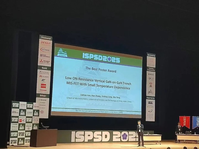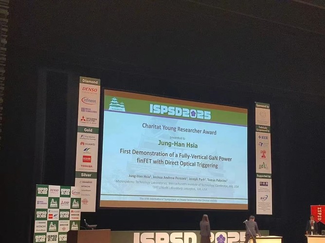會議期間,今年ISPSD2025最佳青年研究員以及最佳POSTER都頒發(fā)給了氮化鎵。麻省理工學(xué)院團(tuán)隊?wèi){借“直接光觸發(fā)全垂直氮化鎵功率鰭式場效應(yīng)晶體管”的首次演示,獲得了最佳青年研究員獎。中國科大楊樹教授團(tuán)隊的“低導(dǎo)通電阻和小溫度依賴性的垂直氮化鎵(GaN-on-GaN)溝槽型 MIS 場效應(yīng)晶體管”獲得了最佳POSTER獎。