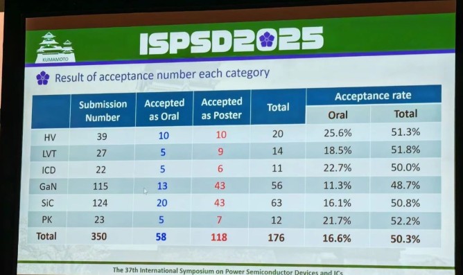 ISPSD 2025共計收到稿件350篇,并創(chuàng)ISPSD征文數(shù)量新紀(jì)錄。今年ISPSD實際錄用176篇,錄用率為50.3%。