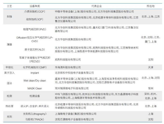 表3 我國(guó)半導(dǎo)體裝備主要企業(yè)