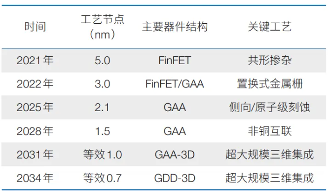 表1 集成電路邏輯器件技術(shù)路線圖