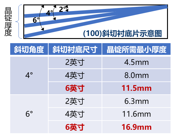 圖5 示意圖:不同角度斜切對晶錠厚度的需求