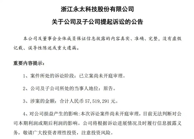 被指侵權(quán)后反擊!永太科技訴天賜材料名譽侵權(quán),要求賠償近5752萬元