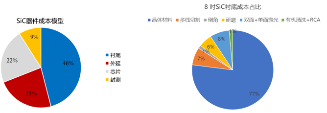 當(dāng)前SiC大規(guī)?;瘧?yīng)用的進(jìn)展不如預(yù)期,主要原因在于SiC的成本還是相對(duì)較高,從SiC器件的成本模型可以發(fā)現(xiàn),SiC襯底占比最高,達(dá)50%,是規(guī)?;瘧?yīng)用最關(guān)鍵一環(huán)。因此SiC襯底降本、提質(zhì)是促進(jìn)SiC大規(guī)模應(yīng)用的關(guān)鍵路徑之一。打開(kāi)SiC襯底的成本來(lái)看,SiC材料占比高達(dá)70%,而且接近一半是在切割中損耗掉了,所以降低SiC材料的切割損耗,又是降低SiC襯底成本的關(guān)鍵路徑。