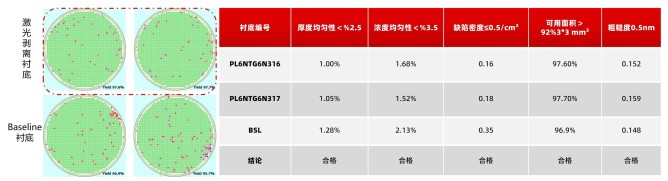 激光剝離襯底加工后面型數(shù)據(jù):激光剝離襯底的面型數(shù)據(jù)整體優(yōu)于行業(yè)水平;