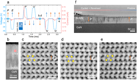 圖2.鐵電ScAlN極化翻轉過程中的可逆原子位移。