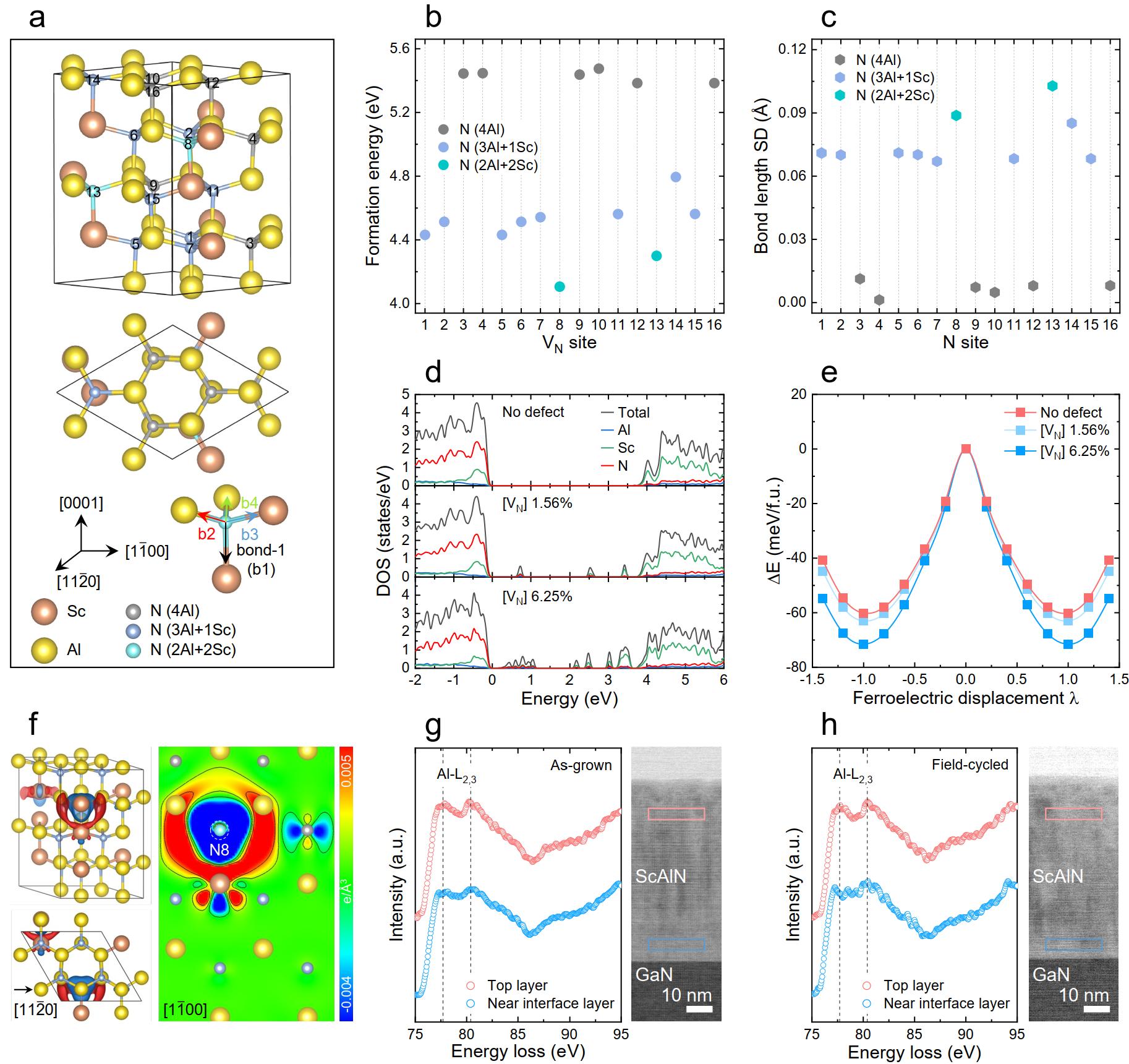 圖4.氮空位對鐵電ScAlN的影響。