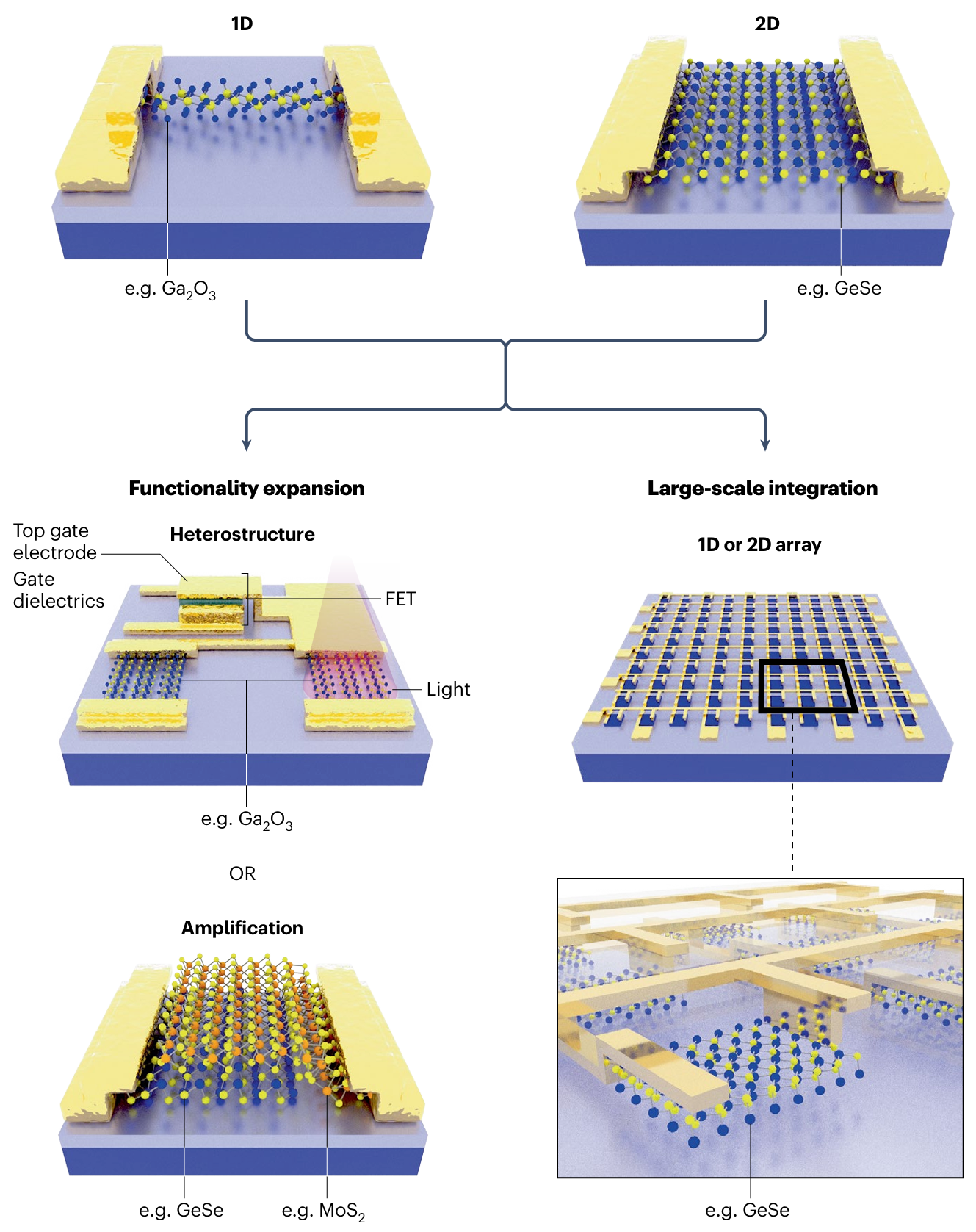 圖5. 低維低對(duì)稱(chēng)半導(dǎo)體偏振光電探測(cè)器的發(fā)展路徑:多功能拓展和規(guī)?;?/span>