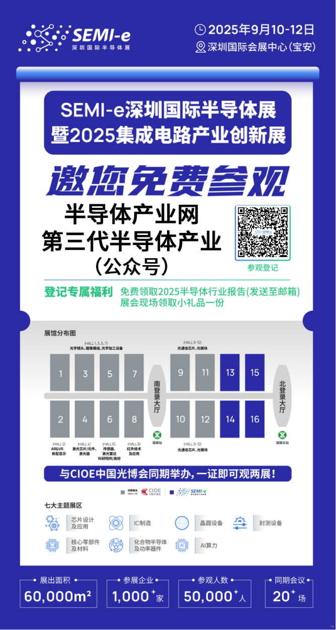 “SEMI-e深圳國際半導(dǎo)體展暨2025集成電路產(chǎn)業(yè)創(chuàng)新展(以下簡稱‘SEMI-e暨創(chuàng)新展’)”將于9月10-12日,在深圳國際會展中心(寶安新館)舉辦。作為中國集成電路產(chǎn)業(yè)全鏈條技術(shù)展示與交流的核心平臺,本屆展會覆蓋終端應(yīng)用、芯片設(shè)計、晶圓制造、封裝測試、設(shè)備材料、EDA/IP等全產(chǎn)業(yè)鏈生態(tài)環(huán)節(jié),并與第26屆中國國際光電博覽會(CIOE中國光博會)同期同地舉辦,形成“光電+半導(dǎo)體”的產(chǎn)業(yè)協(xié)同效應(yīng)。兩大展會觀眾資源的深度融合,將為參展企業(yè)帶來跨界機(jī)遇。