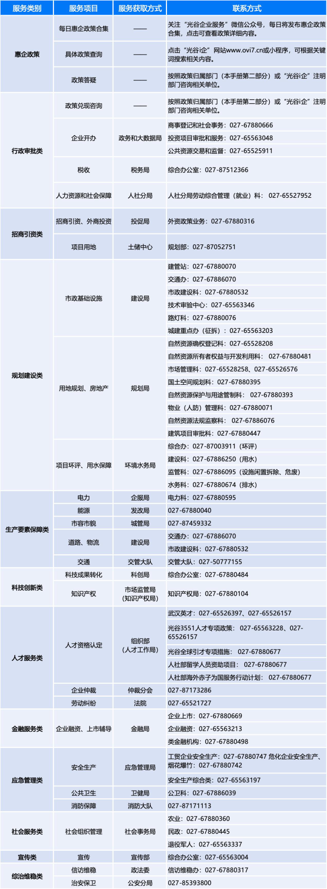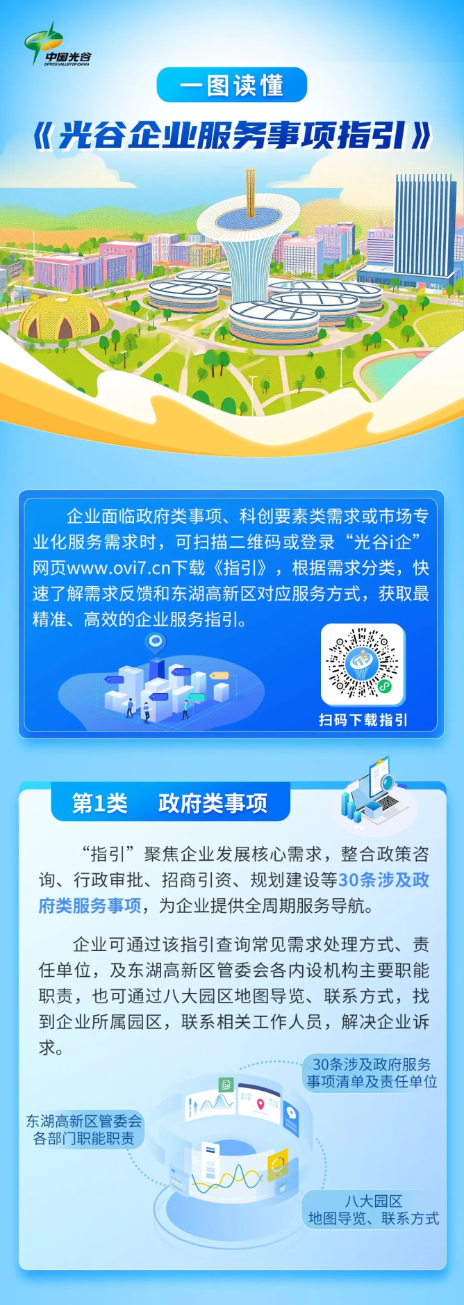 近日,《光谷企業(yè)服務(wù)事項(xiàng)指引》(以下簡(jiǎn)稱“《指引》”)發(fā)布,《指引》圍繞政府事項(xiàng)、科創(chuàng)要素、專業(yè)服務(wù)三類企業(yè)服務(wù)需求,梳理了企業(yè)常見(jiàn)服務(wù)事項(xiàng)及服務(wù)獲取途徑。