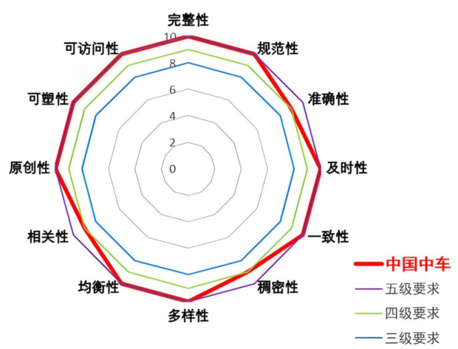 評估過程中,專家團隊圍繞數(shù)據(jù)集的完整性、規(guī)范性、準(zhǔn)確性、及時性、一致性、稠密性、多樣性、均衡性、相關(guān)性、原創(chuàng)性、可塑性、可訪問性等12個核心一級指標(biāo)及相關(guān)二級指標(biāo)進行了全面細(xì)致的量化評估。經(jīng)過嚴(yán)格審核,中國中車數(shù)據(jù)集在各項指標(biāo)上均達(dá)到高標(biāo)準(zhǔn)要求,充分體現(xiàn)了其在數(shù)據(jù)質(zhì)量管理方面的專業(yè)水平和嚴(yán)謹(jǐn)態(tài)度。