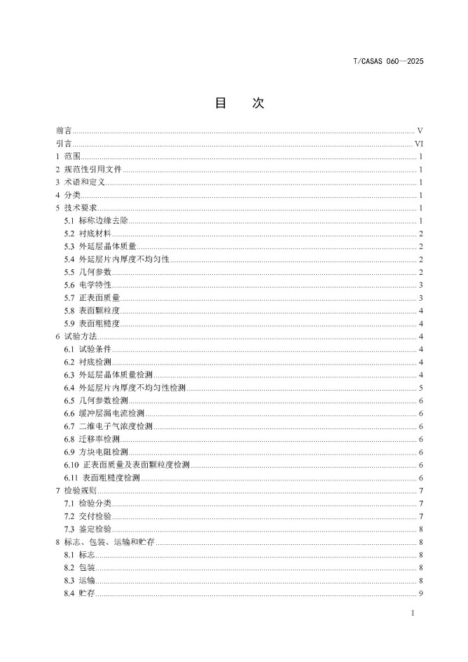 T/CASAS 060—2024《用于HEMT功率器件的硅襯底氮化鎵外延片》規(guī)定了用于HEMT功率器件的硅襯底氮化鎵外延片的分類(lèi)、技術(shù)要求、試驗(yàn)方法、檢驗(yàn)規(guī)則、標(biāo)志、包裝、運(yùn)輸和貯存。適用于在硅襯底上生長(zhǎng)的用于功率電子領(lǐng)域的具有復(fù)合結(jié)構(gòu)的氮化鎵外延片的研發(fā)生產(chǎn),測(cè)試分析及質(zhì)量評(píng)價(jià)。