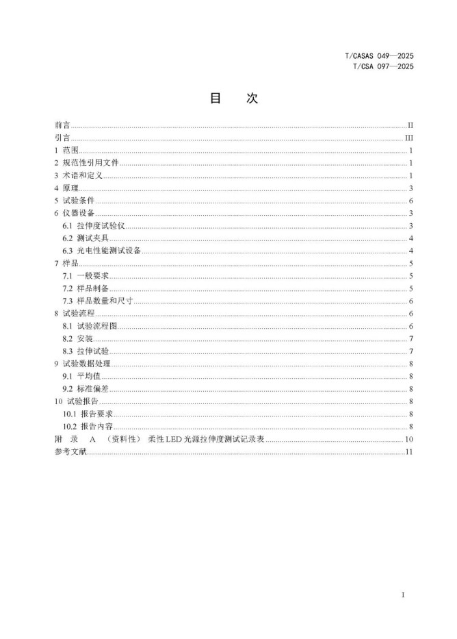 T/CASAS 049—2025《光治療用柔性LED光源 拉伸度測試方法》描述了面向光治療的柔性可拉伸LED光源(以下簡稱“光源”)拉伸度的測試方法,包括測試原理、儀器和工具、試樣準備、試驗條件、試驗程序、數據結果和試驗報告。適用于在可穿戴光治療儀中柔性可拉伸LED光源的的研發(fā)生產、檢測分析等,可拉伸的OLED、半導體激光器件等柔性光源可參考使用。