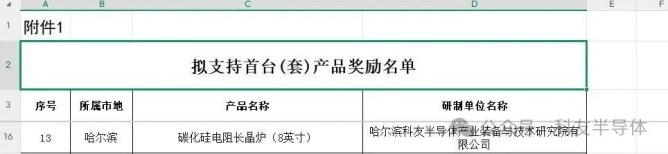 近日,黑龍江省工業(yè)和信息化廳正式公布《 2025年黑龍江省首臺(tái)(套)產(chǎn)品獎(jiǎng)勵(lì)及保險(xiǎn)補(bǔ)償政策擬支持名單公示》,我司自主研發(fā)的“碳化硅電阻長(zhǎng)晶爐(8英寸)” 成功入選!