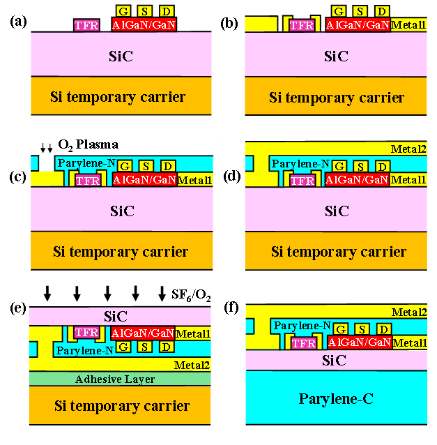 圖2:異質(zhì)集成柔性GaN射頻功率放大器制備工藝