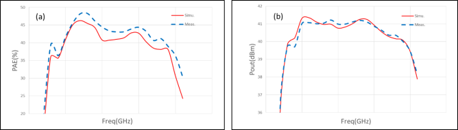 電子科技大學(xué)團隊依托能訊0.25μm GaN工藝,在《Chinese Journal of Electronics》發(fā)表了高線性度功率放大器成果。研究通過非線性抵消理論與柵極偏置優(yōu)化,突破了傳統(tǒng)超寬帶高功率放大器效率與線性度的權(quán)衡。在2.6 GHz下,三階互調(diào)最優(yōu)點(IM3-S)調(diào)至0.9 dB OBO時實現(xiàn)-33.8 dBc 的IM3、39.5 dBm 的Pout、41%的PAE;在5.6 GHz下,IM3-S調(diào)至2.2 dB OBO時實現(xiàn)-35.6 dBc 的IM3、37.7 dBm的 Pout、52% 的PAE 。兩頻點下OIP3/Pdc分別達到39和128。